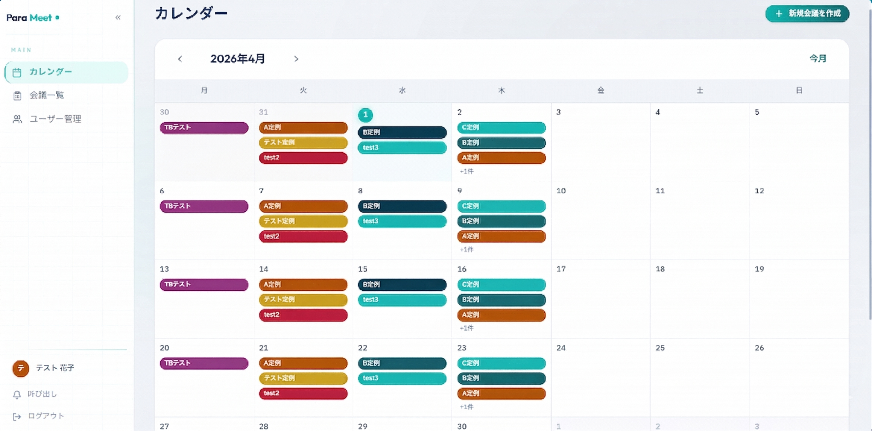 会議一覧 — 実施済み・予定中の会議をステータスごとに確認